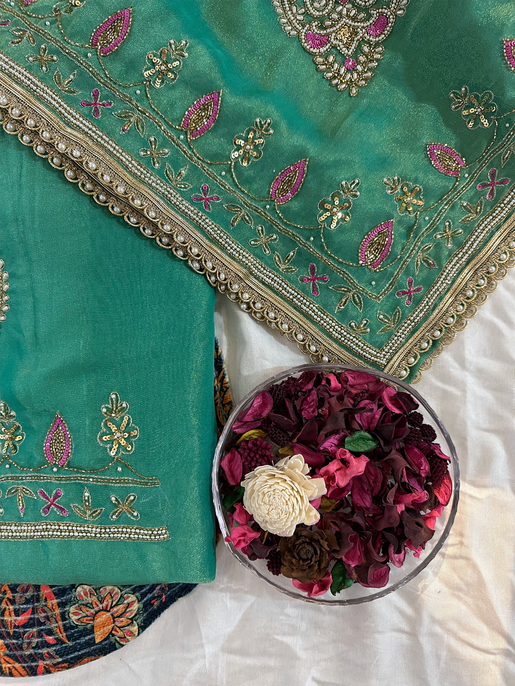 Mint Green Shimmer Fabric Unstitched Suit Set